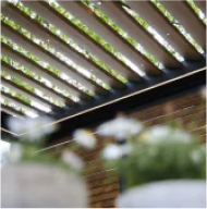 On the one hand, this is thanks to the windproof and waterproof seal at the top, with either a Climate Louver roof or a fixed wooden Cocoon roof, and on the other hand thanks to the double-glazed aluminium (sliding) windows.